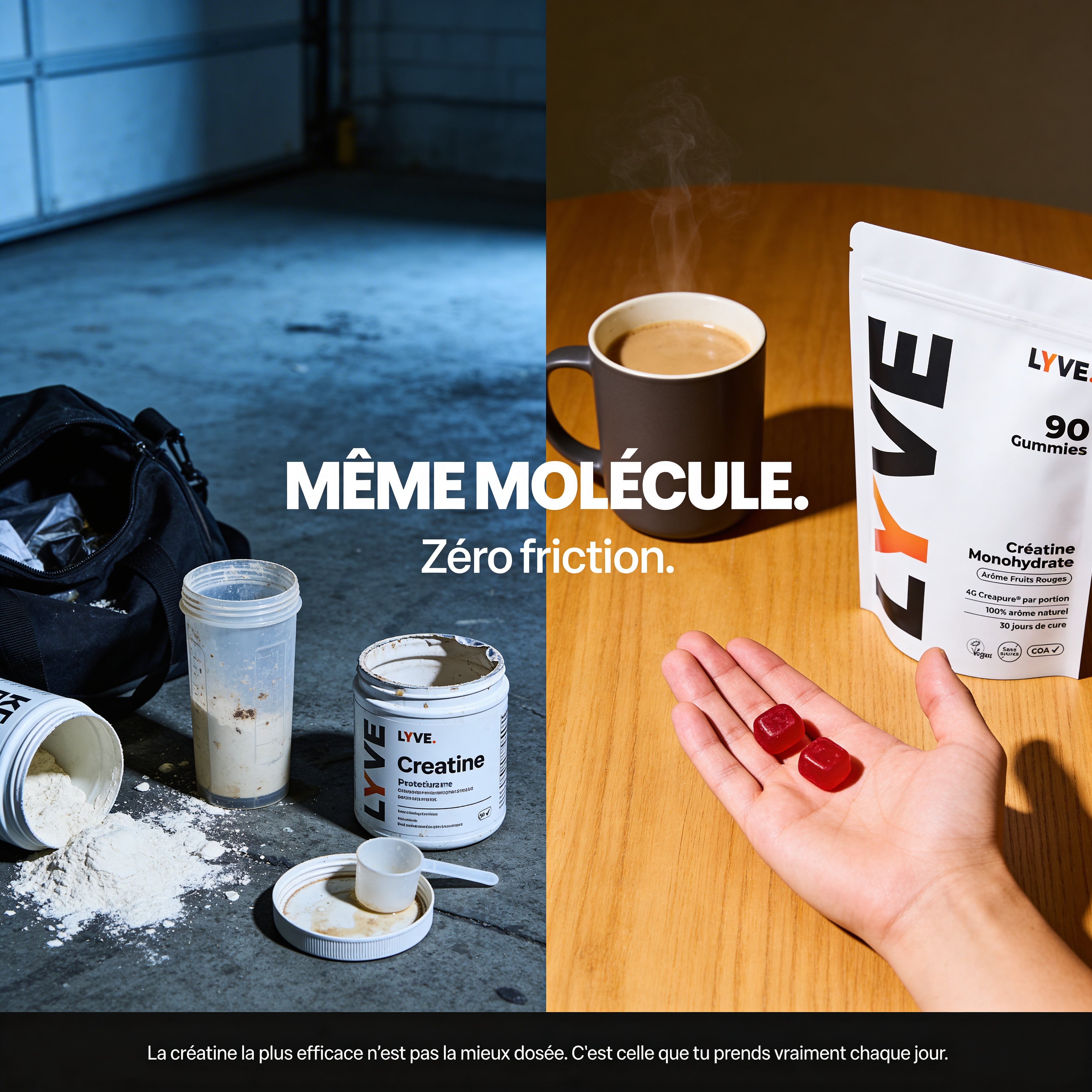 J'ai comparé avant d'acheter. LYVE c'est 5g de vraie créatine mesurée en labo. Les concurrents affichent moins et certains ne prouvent rien.